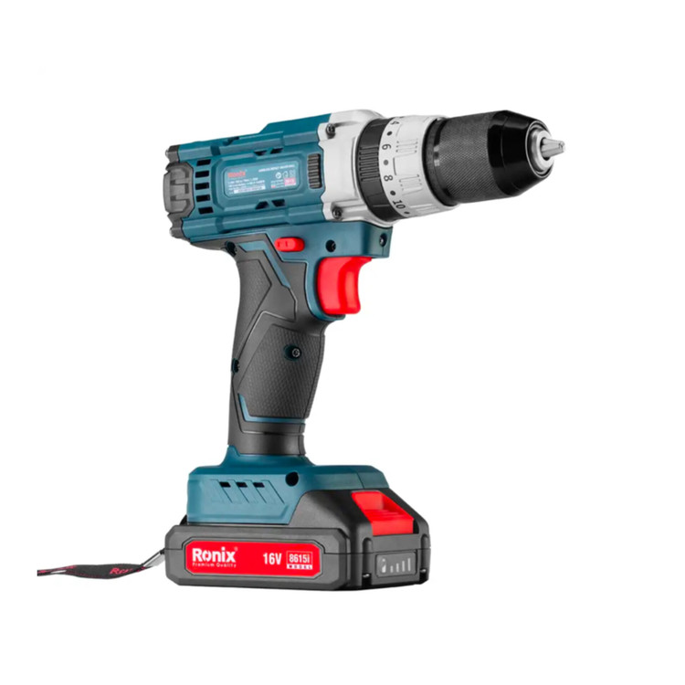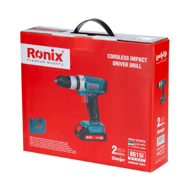 دریل پیچگوشتی شارژی 16 ولت 8615i رونیکس، ساخت ایران است. این محصول تاپ لاین، ابزاری قدرتمند با سه عملکرد مجزای سوراخکاری، پیچکاری و سوراخکاری چکشی است. دریل پیچگوشتی شارژی 8615i از یک سهنظام اتوماتیک و قدرتمند 10 میلیمتری و تمامفلزی بهره میبرد که نسبت به فشار حاصل از فعالیت در سطوح متراکم مقاومت خوبی از خود نشان میدهد. همچنین، این دستگاه شارژی، عملکرد مناسبی حین سوراخکاری سطوح بتنی، فلزی و چوبی دارد.